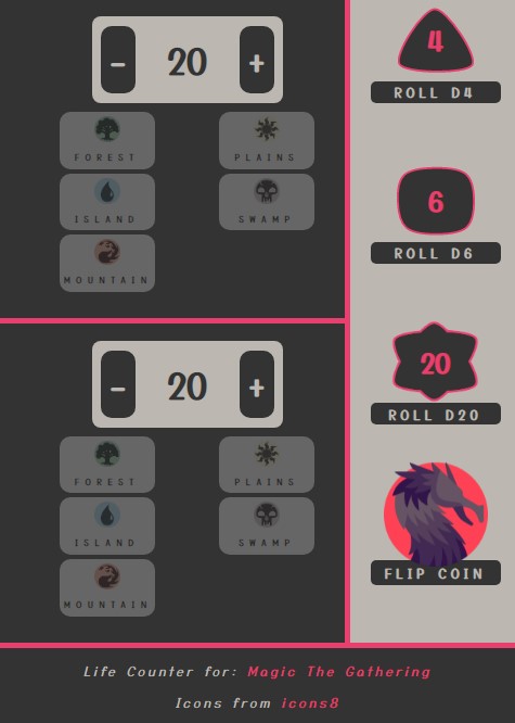 Do you, or someone that you know, play Magic The Gathering? Then, you might be familiar with the struggles to carry all your life-counters, different dice, and coins with you. This is why I decided to create an all-in-one MTG life-counter.